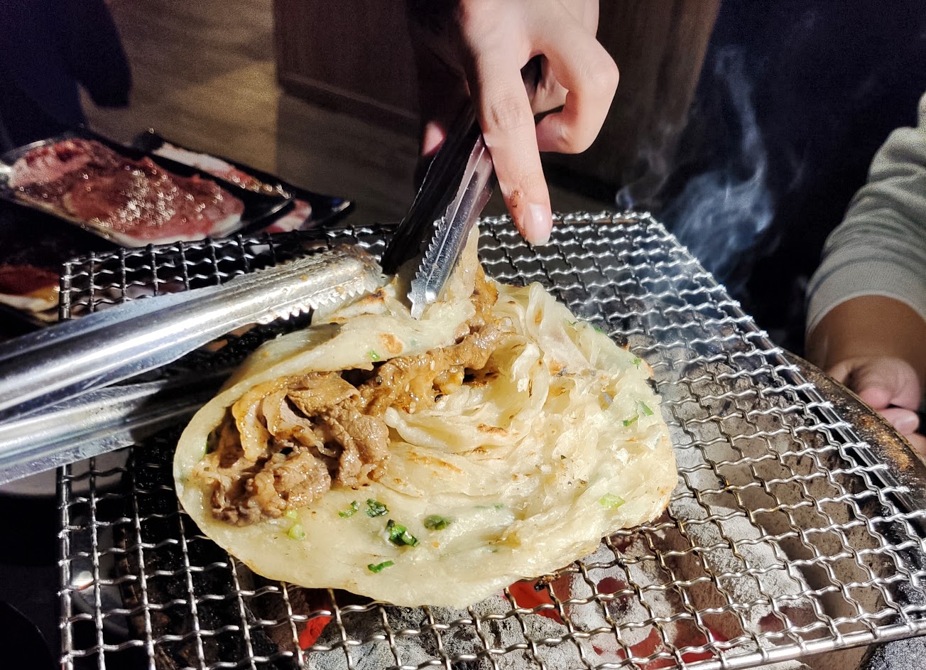 可媗從頭幫我們烤到尾,還用隱藏版超好吃蔥抓餅給我們吃,超愛,這個餐廳給人的感覺很活潑,下次會再來噢❤️