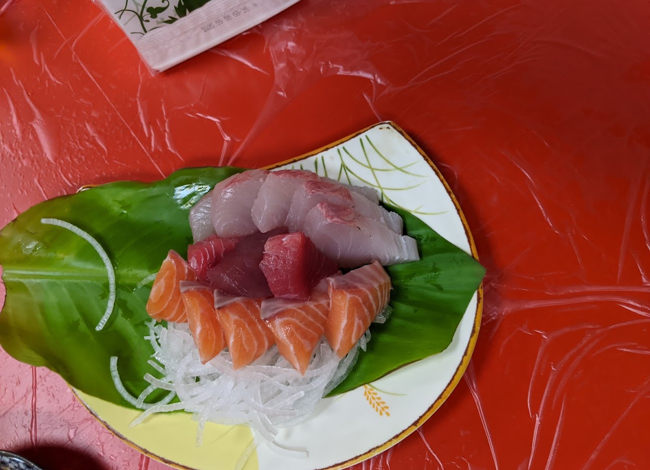 三個人 點了 炒麵/好吃麵條偏軟 生魚片/讚