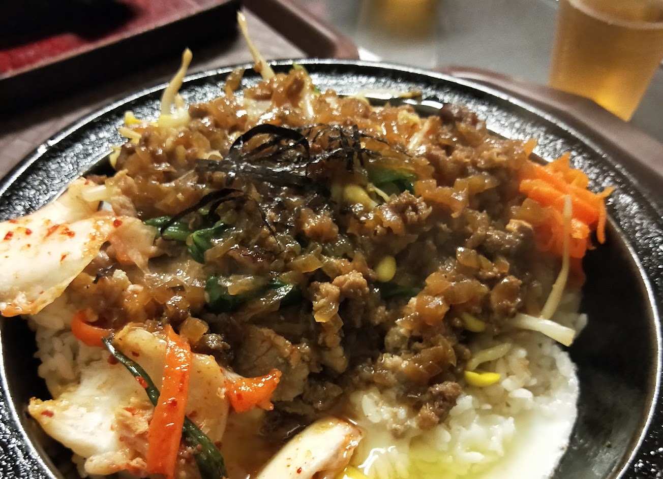 豆腐湯一般般,烤肉定食的肉太難咬斷了,白飯還有嗶嗶飯的飯都太濕太軟爛了,嗶嗶飯味道也一般,都不像韓式,價格120也不便宜,地處偏僻