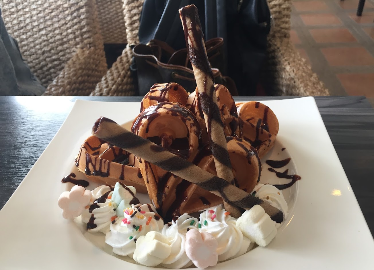 二樓是有的位子,我們是吃完才發現,食物是完全不值得那個價格的,請一定要去二樓。鬆餅好像路邊小吃脆皮雞蛋糕,重點是還沒有比較好吃,份量又少,乳酪蛋糕很普通,吃的出來乳酪原料很廉價,水果茶主要味道是用果醬沖出來的,芒果冰沙是芒果醬打的,沒有新鮮果粒。少數的好處是我們點飲品都很大杯,冷氣很強,環境乾淨,服務還可以…。