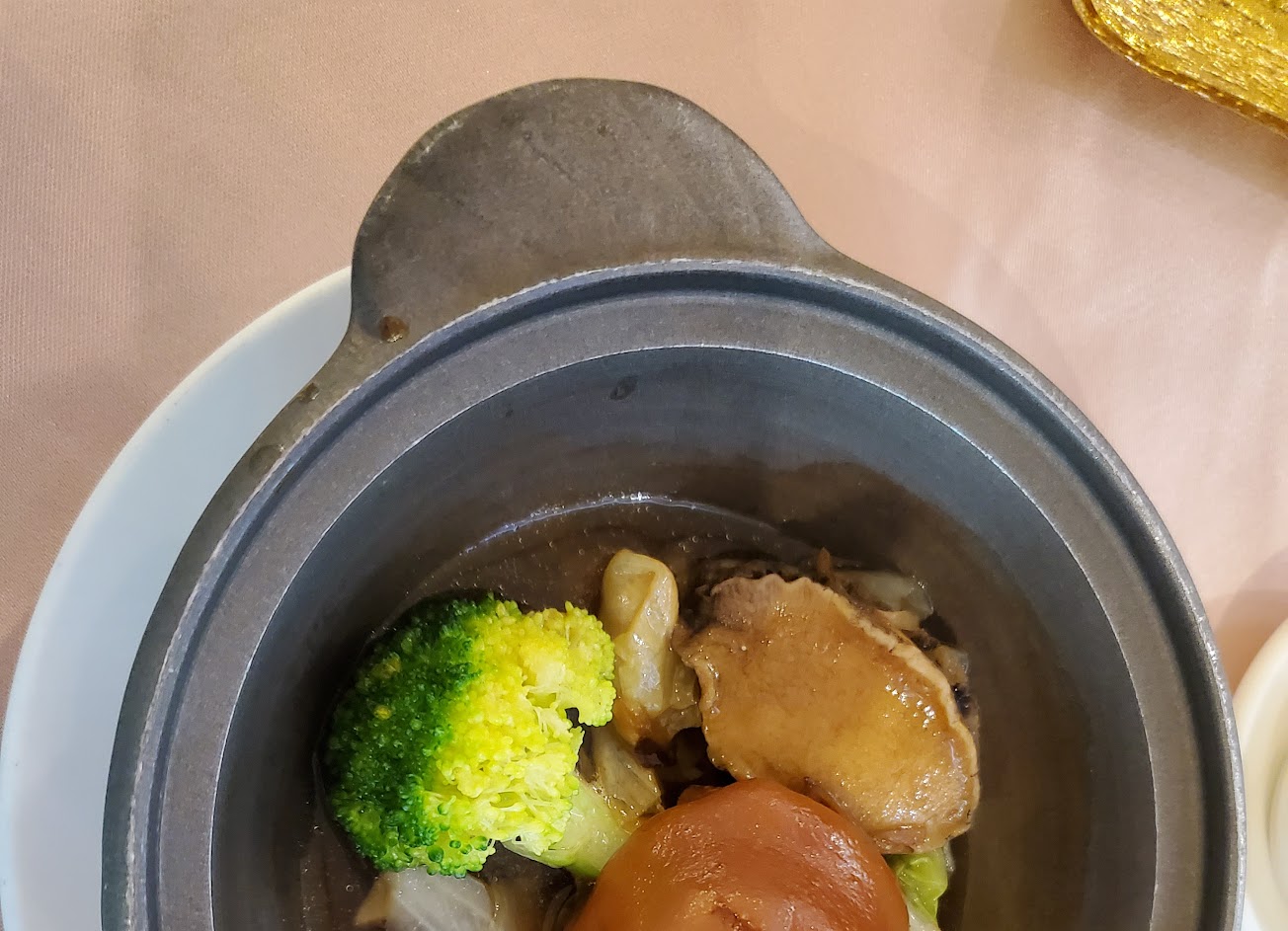 宴席上菜其實真的是很慢的那種,像吃義大利菜很慢很慢,而且服務人員不知道是不足還是本來那裡就是這樣,從一開始的濕紙巾,就沒有再補了,跟服務人員說需要濕紙巾,要重複說,跟不同的服務人員說,看哪一個會想到「濕紙巾」這件事,桌數不到20桌,我也看不懂服務人員到底是很忙還是人員不足。