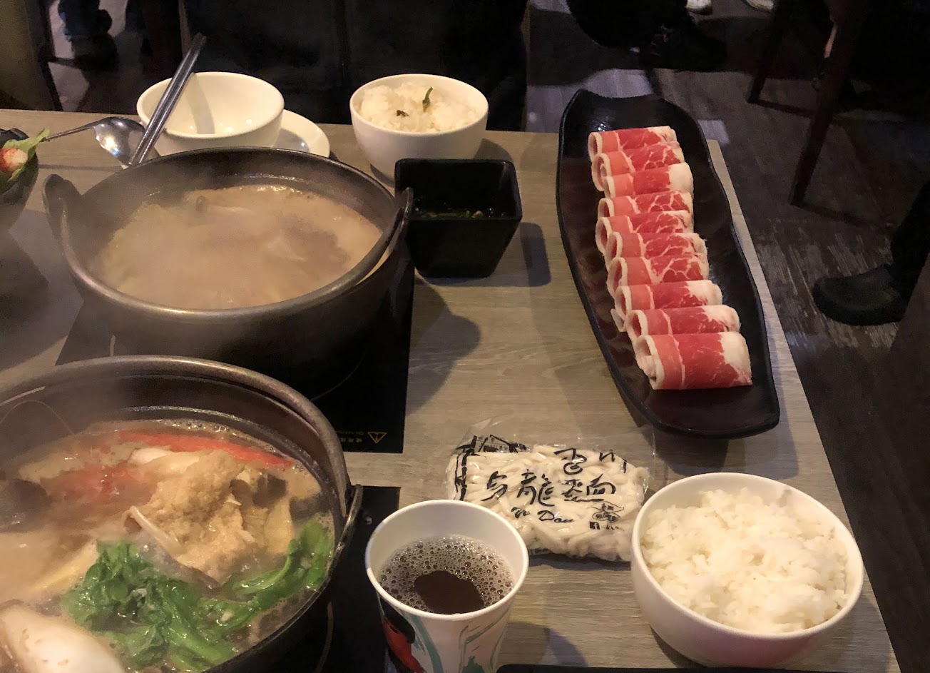 霜降牛肉鍋很好吃,而且可以選擇不同的湯底