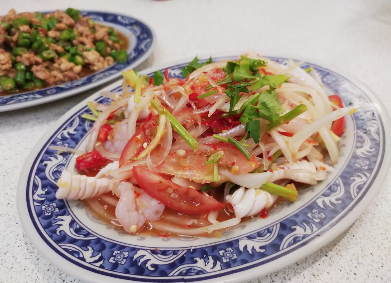 泰式打拋豬飯 口感就是台式肉末炒四季,有點失望;涼拌荷包蛋口味清爽,尚可;檸檬魚醬汁偏甜、有辣、放檸檬片、驢魚普通;泰式炒泡麵 醬汁很鹹 (此刻會想起x力泡麵的好吃);停車不易。