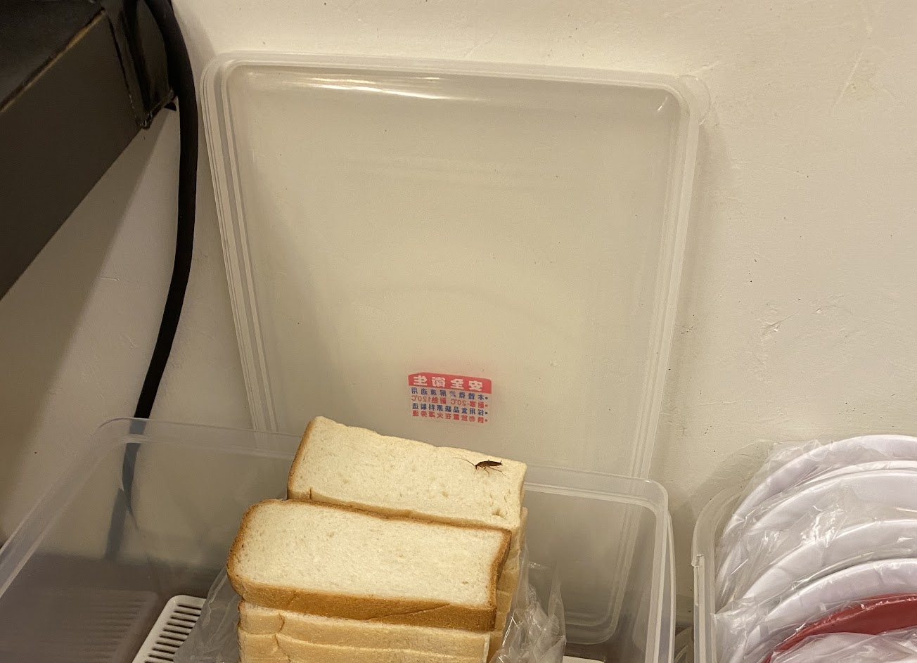 一進去就看到約5、6隻小強在自助吧的麵包區亂跑來不及拍,之後又看到小強大剌剌在麵包上….