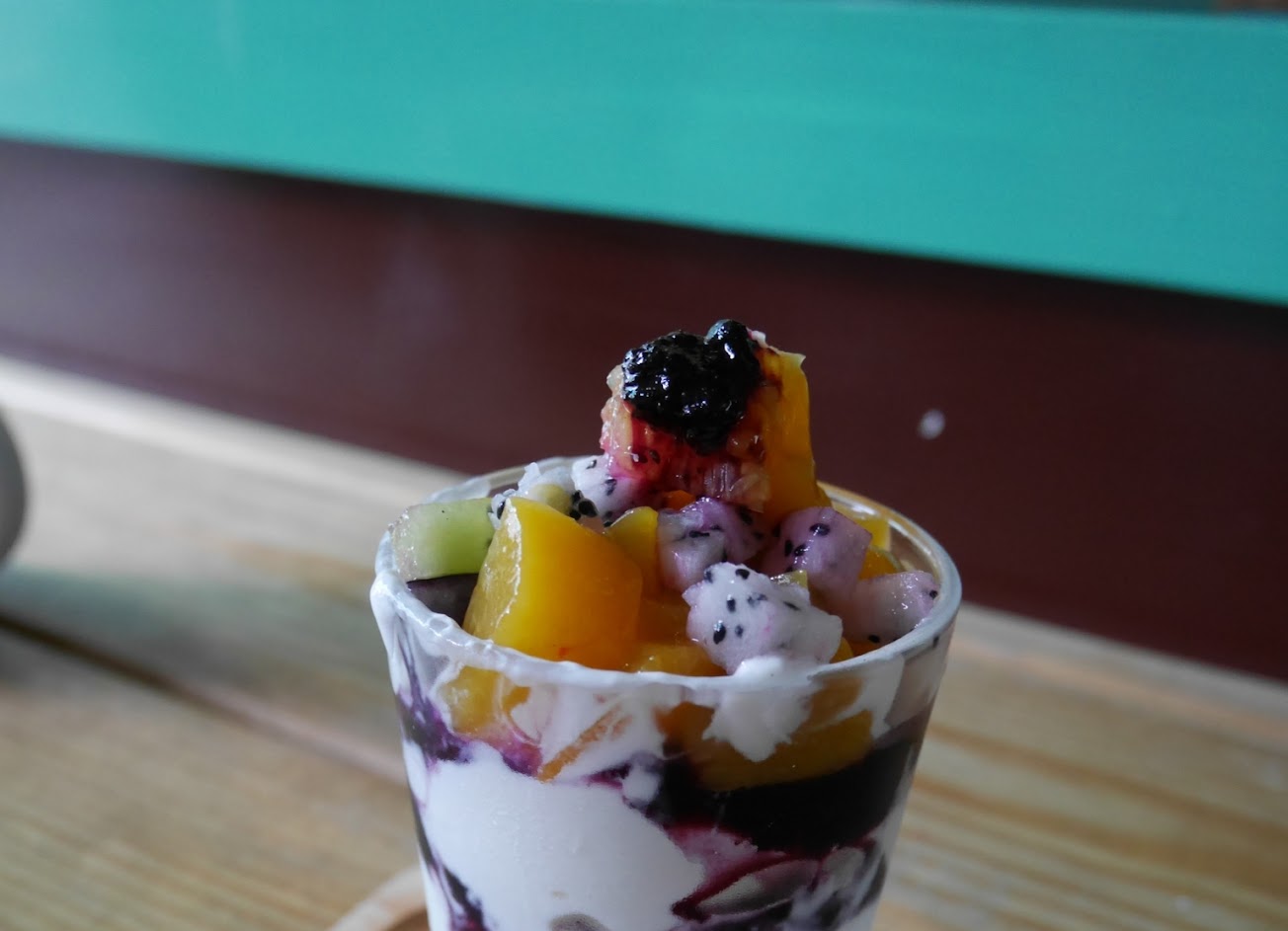 在市場內的小店,提拉米蘇與水果優格好吃