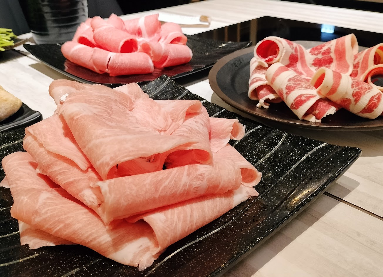 火鍋有三種湯底,我們選豚骨奶香和招牌銷魂麻辣,濃郁的湯頭讓人想一直品嚐。