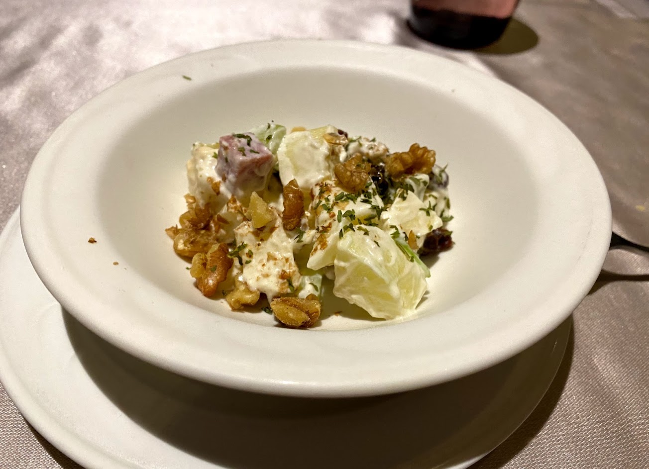 點了兩碗酥皮濃湯,等半天後來說抱歉賣完了,過一會又說還有湯剛剛是聽錯廚房的指示,問我們要不要,想說有就送來吧,結果酥皮翻開兩碗湯都只裝了不到一半,是利用客人處理剩菜用剩菜賺錢嗎?