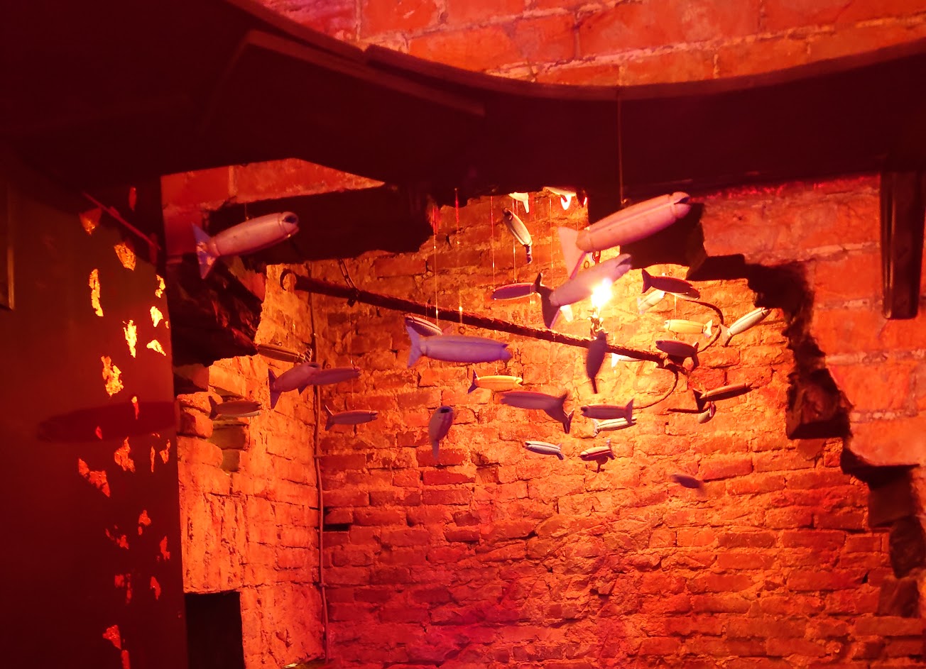 店的整體某個比較暗黑、懷舊,甚至是衝突的元素拼湊,像是牆的邊緣有鶴的圖,桌子有阿公阿嬤家的大圓桌、學校塗滿立可白的桌椅,中西式時鐘、人體模型等等。 平均每人消費金額 $600-800 餐點:5 服務:4 氣氛:4