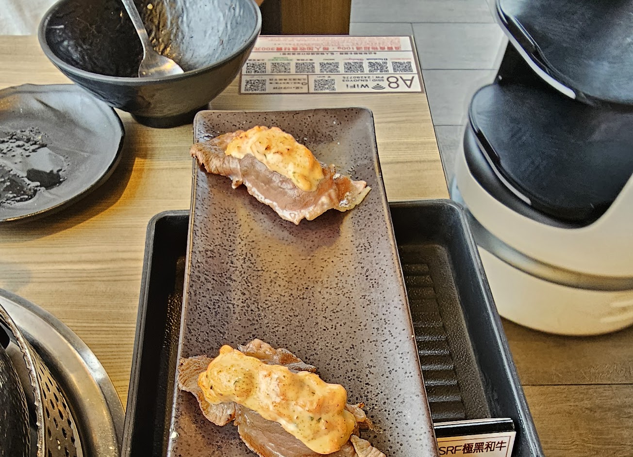 ?服務:有機器人幫忙送肉+收餐盤,可以減少桌上的杯盤狼藉的狀態。