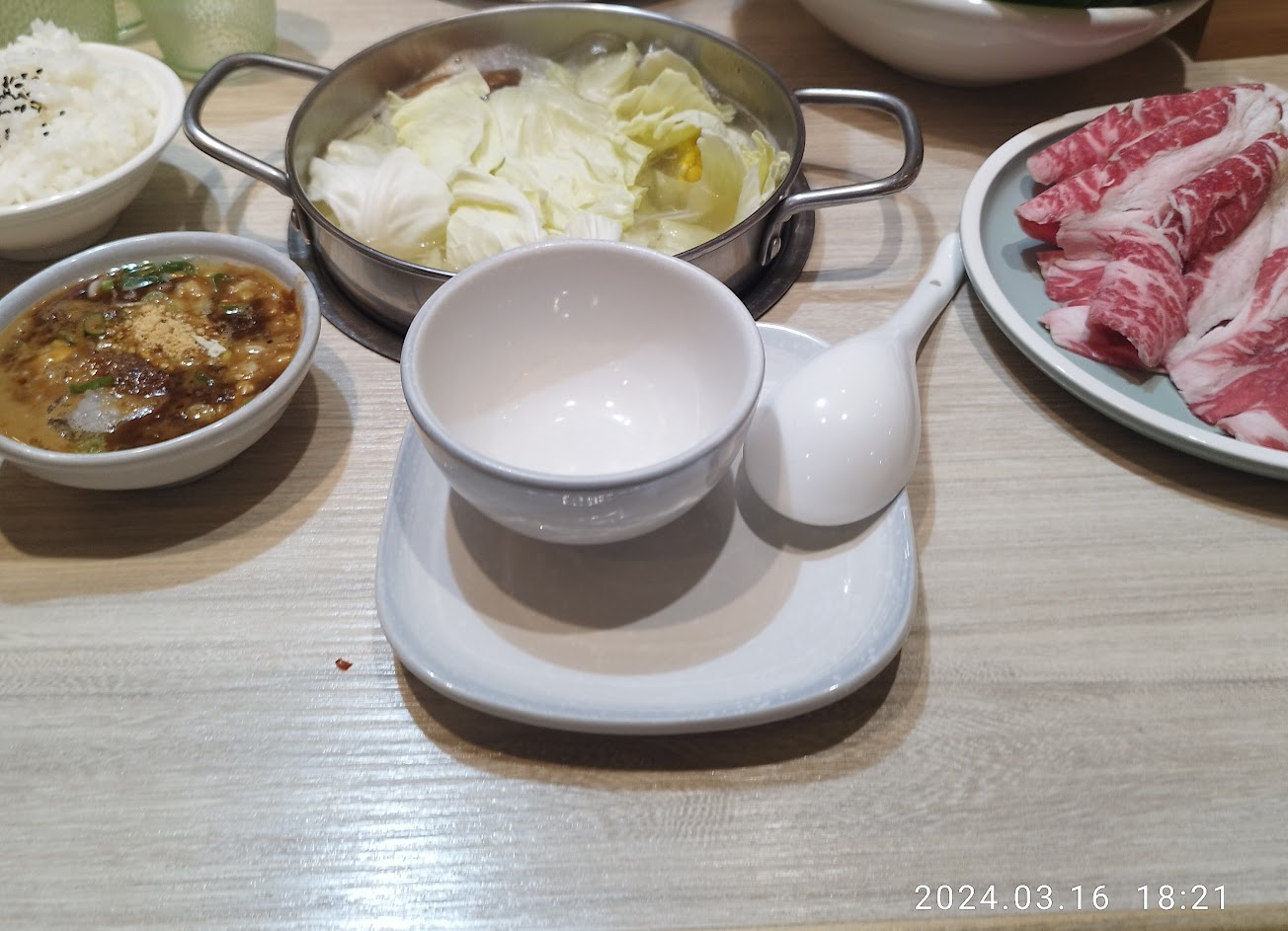 湯頭很普通,無特別之處,火鍋的菜盤配料跟其他家火鍋店相比也是遜色許多(當天吃的玉米也不新鮮,是快壞掉的)。