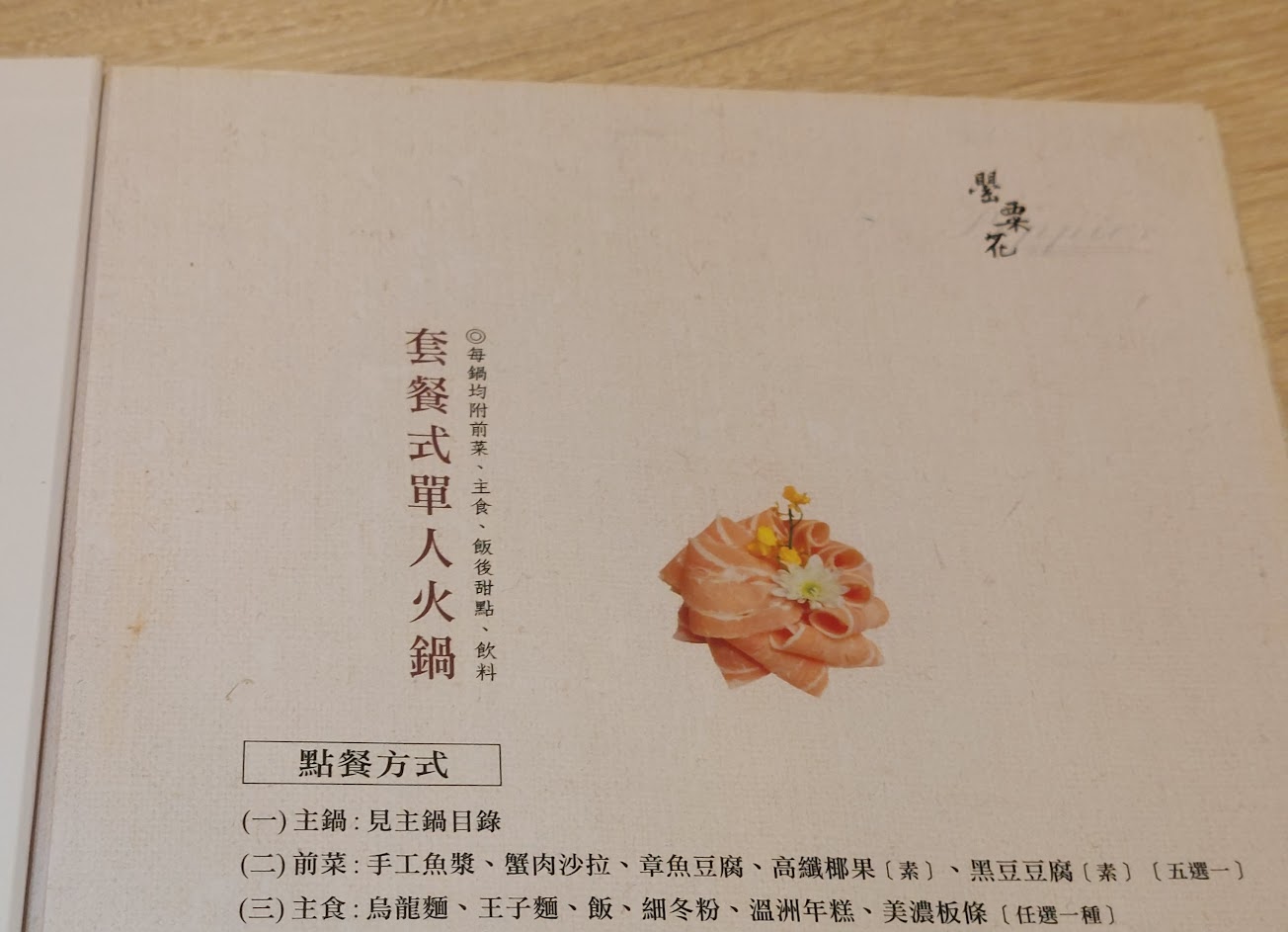 位在愛六路小巷內的一家火鍋店,兩家店面組成,所以用餐空間相對也寬敞舒適,裝潢燈光簡單大方。食材新鮮乾淨,主菜(鱸魚、牛肉、雞肉)份量超足夠而且鮮美,另外也可以選擇前菜、甜點和飲料,家人都吃得心滿意足,所以價錢貴一點,應該也是值得的。