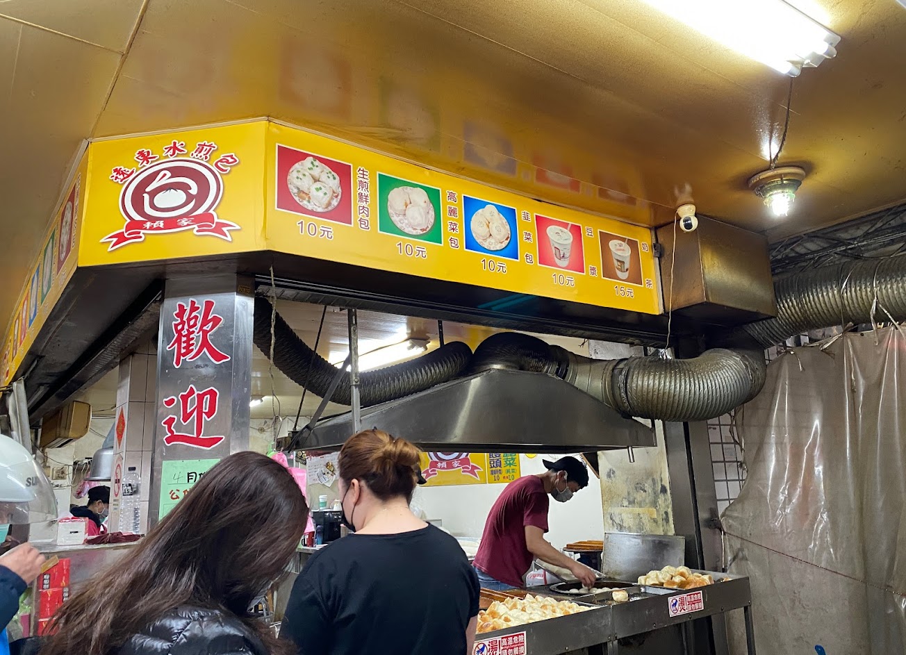 採開放式空間的樸實店面,周圍熙熙攘攘,供應傳統水煎包。