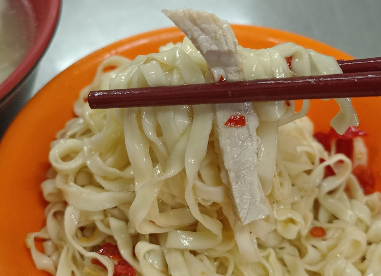 慕名前往品嚐,驚見店家徒手抓肉片放在麵上遞給我,就在呆呆地把麵拌開時,又見他那隻煮麵,收錢的手,抓著芹菜灑入湯中後示意是我的….接過碗來真是百感交集,彷彿回到古早時代,現今怎還有店家如此不重衛生?勉強用完餐,那肉片就讓它靜靜地躺在那…..