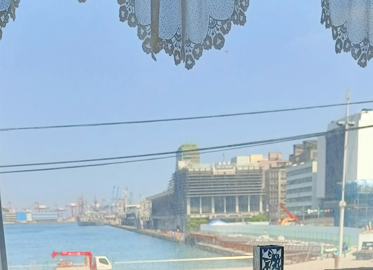 老闆很親切 感覺咖啡廳很溫暖 很像家 在坎仔嵿二樓 老舊的魚市場建物二樓底部微微的光 就是咖啡廳了 外面則是可以看的基隆港