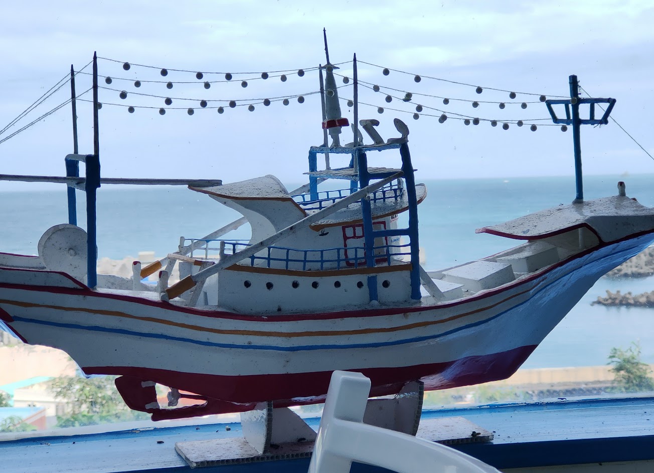 常來外木山遊玩卻是第一次到這家咖啡館消費,這裏面對基隆嶼海面,海景寬 闊。餐飲多樣化,場地寬廣可以悠閒飲食,不会有急迫感,是一處發呆的好地方。