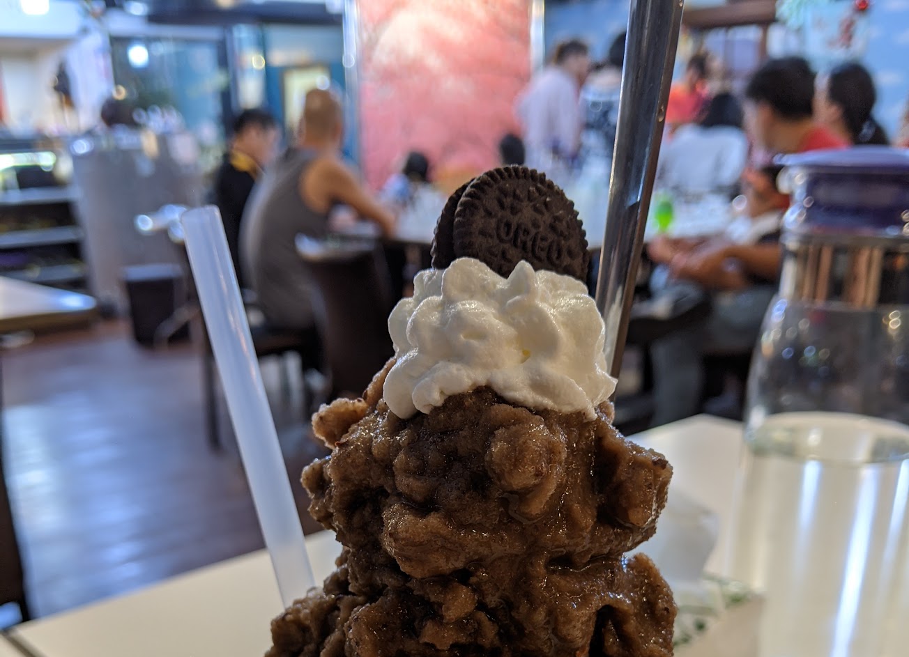 上次跟朋友一起來這邊大船入港休閒咖啡☕️館~很不錯的咖啡廳,朋友叫花生厚片,算是很正常的樣子,點了咖啡冰沙跟這個什麼「巧克力厚片」拿來….