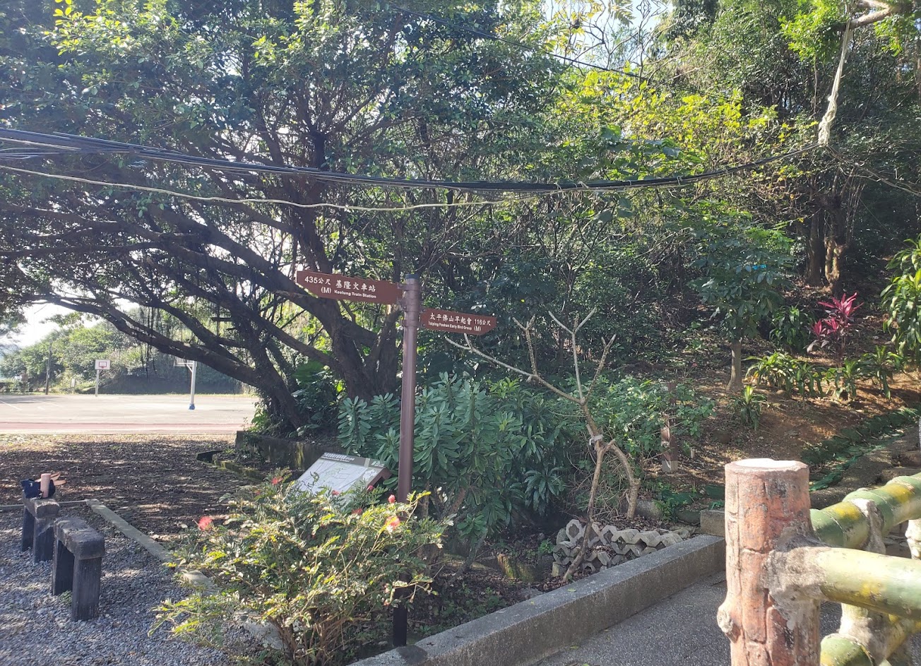在太平國小遺址旁邊。景色很好的,可以俯瞰基隆港。設有一整排椅子,方便民眾看夜景,還設有垃圾桶,相當貼心。