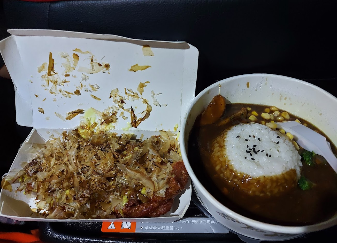 很棒的店外送還有附湯飲料。豬排很好吃又厚。咖哩醬還可以