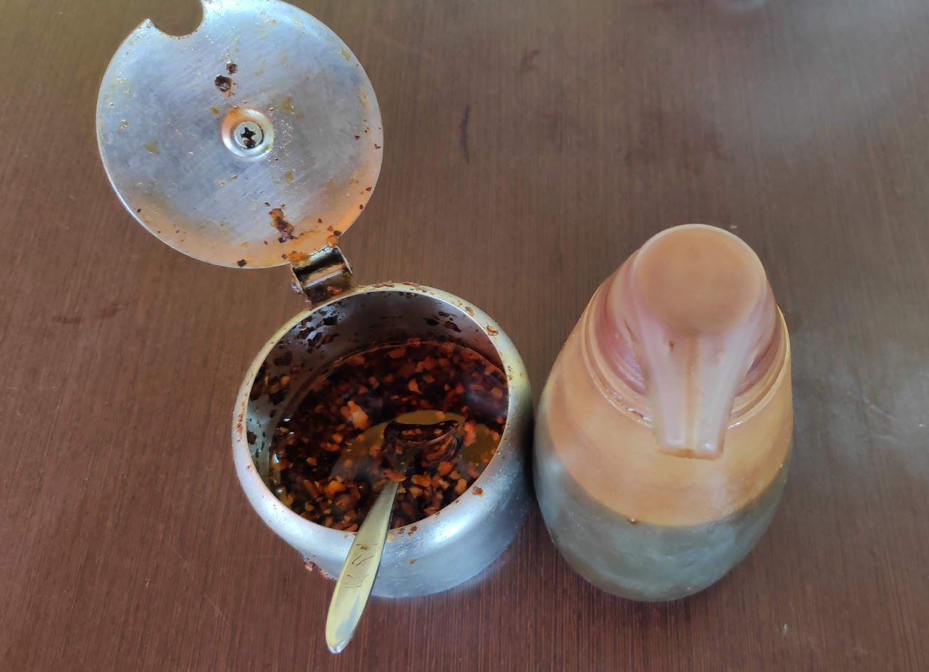 蚵仔麵線,蚵阿也多,客人多時桌面無人清理。
