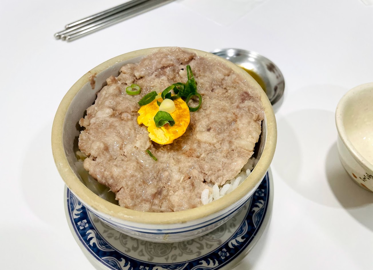 正餐 +三寶粥:粥本身夠味,肉嫩度不錯,有口感也保持嫩度,不過比較稀一點 +豉汁排骨飯:豉汁排骨應該是因為放在飯上,不會有泡在汁裡軟爛的感覺,喜歡吃口感的人會比較喜歡 -窩蛋免治牛肉飯:牛絞肉沒什麼味道,蛋煎的比較不焦(不符個人喜好?),不建議