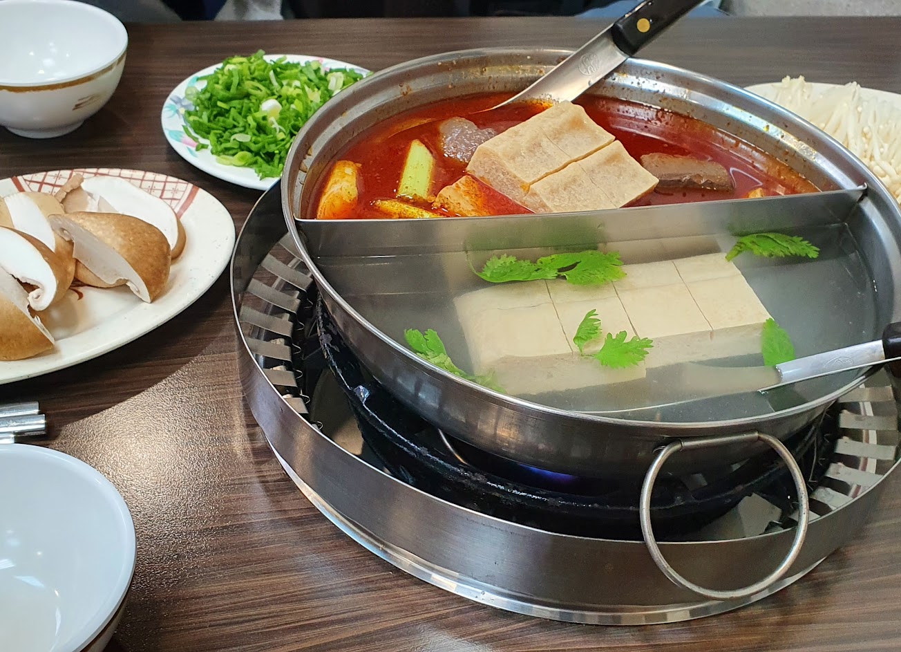 每年開門都會跟同事來的火鍋店,沒很辣也沒很特別,但是鴨血豆腐就是好吃