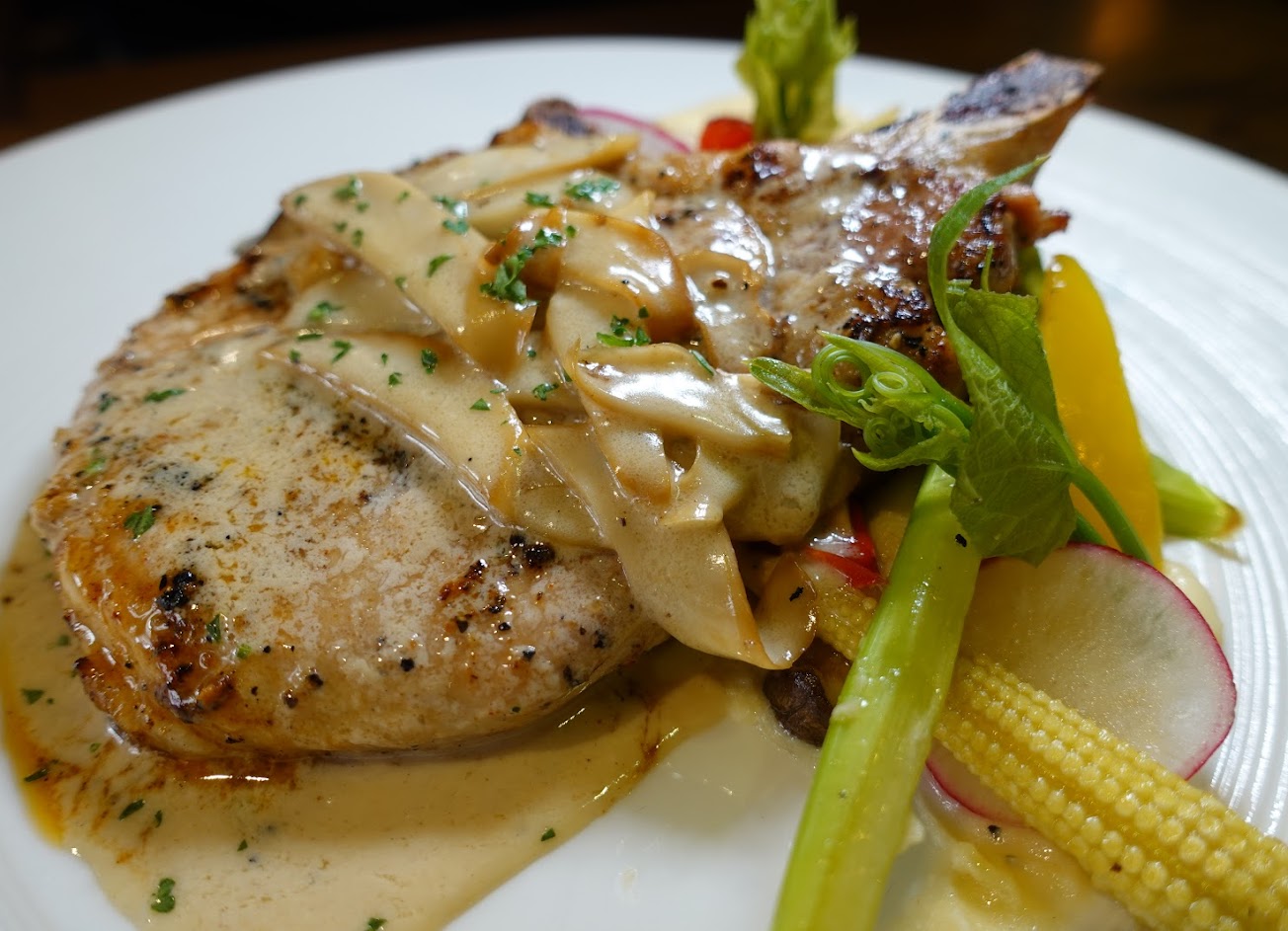 戰斧豬肥瘦適中,不會油得讓人發膩,也不會柴、乾,是剛剛好的軟嫩,非常好吃,一旁的珍珠洋蔥也相當美味!