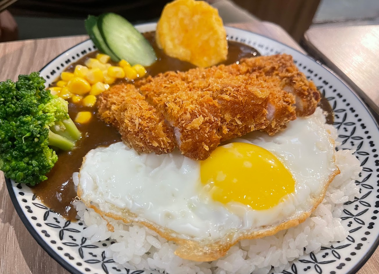 蛋滑順不過熟,炸雞的調味上被咖哩蓋過去了…