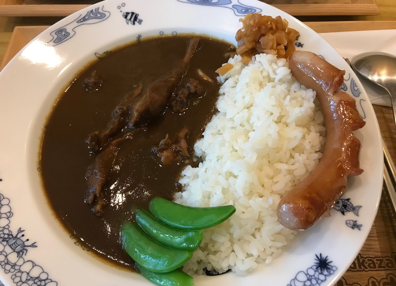 咖哩的口感比較稀,但香料辣味突出,配菜的豆莢新鮮脆口,很多小地方都蠻用心;飯量偏多,可以加點蛋和德腸更滿足