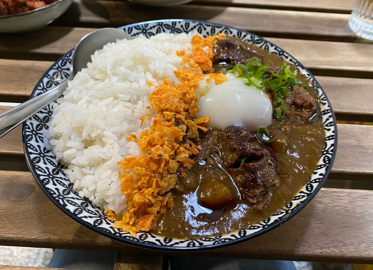 這次點了一份牛肋咖哩飯 但感覺咖哩的味道很淡 然後肉給的份量也很少 CP值沒有到很高