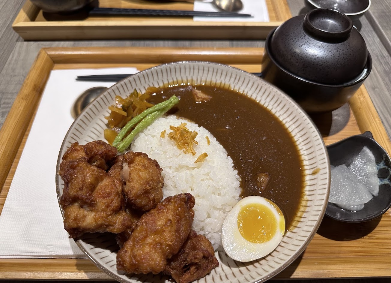 今日吃唐揚炸雞跟豬排咖哩並且附有雞湯