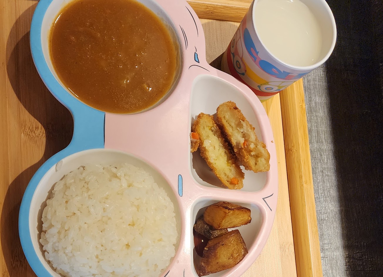 咖喱有點像水果咖喱,女兒拿來配我的炸雞吃的很開心,可樂餅孩子不太買單~