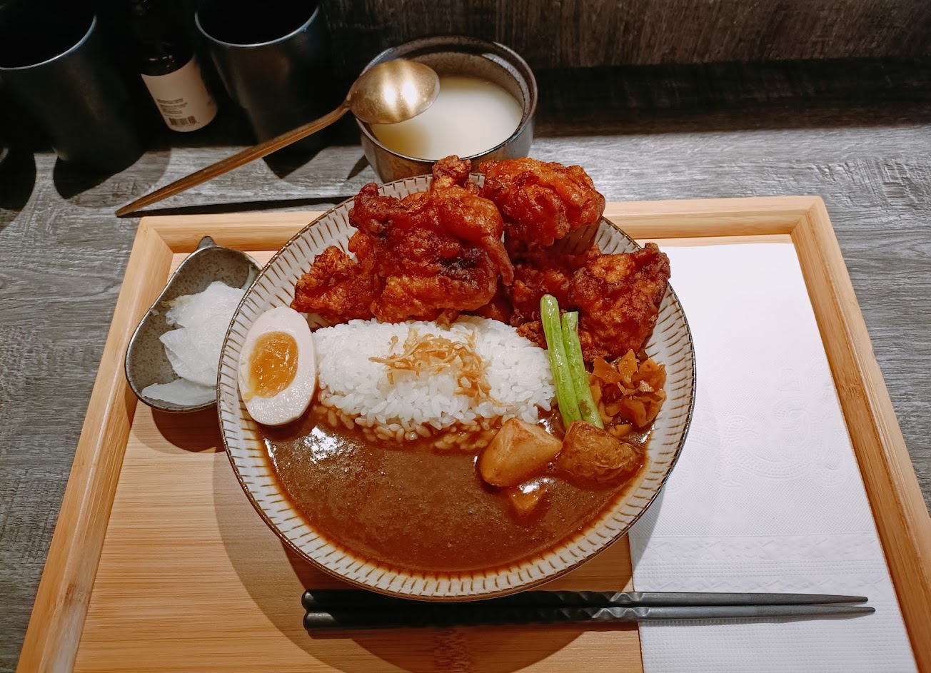 咖哩味道適中偏稀,若能有更濃郁的口感會更好,和牛部分老實說吃不出來,反而有幾塊帶筋咬不爛,炸雞非常美味,雞湯口感普通,環境還算清幽雅致,可惜沒有提供紙巾比較不方便。