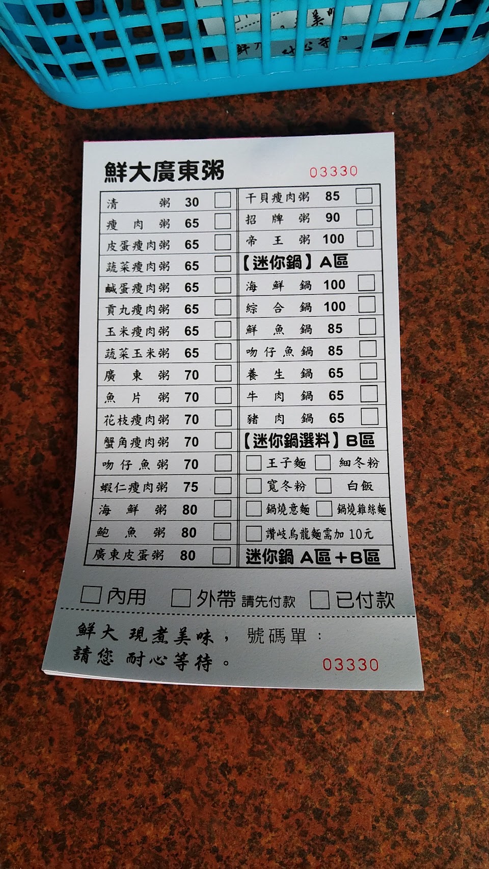 2024最新在地推薦餐廳的菜單_鮮大廣東粥的菜單、圖片