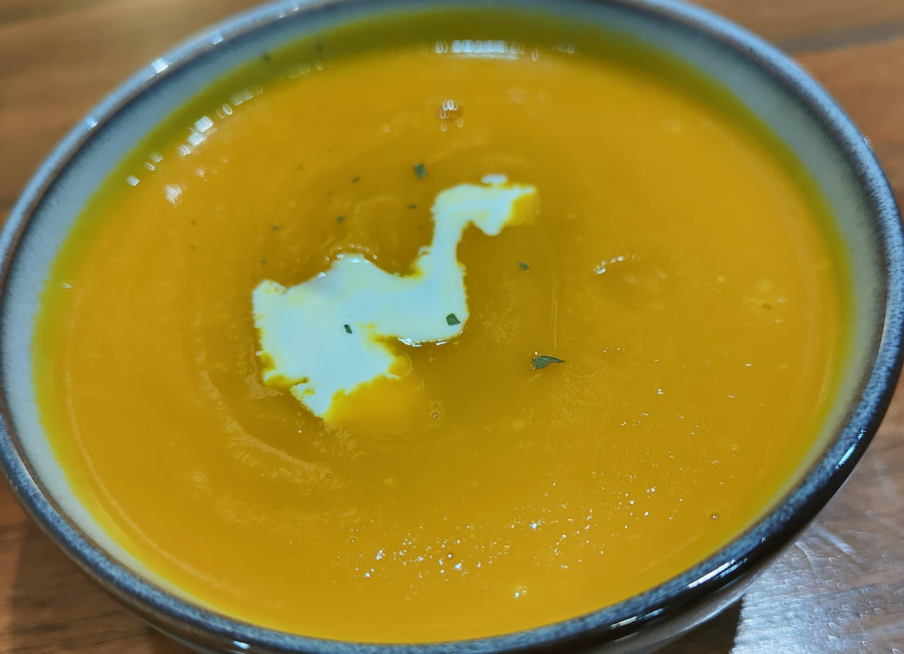 咖哩醬偏濃但很清爽,辣度不高不敢吃辣也可以接受,紅蘿蔔和馬鈴薯也沒有少。豬排很像便當店的排骨,與咖哩飯搭配起來非常好吃?ps.咖哩飯有附麵包一片(有cheese 奶香)和南瓜濃湯