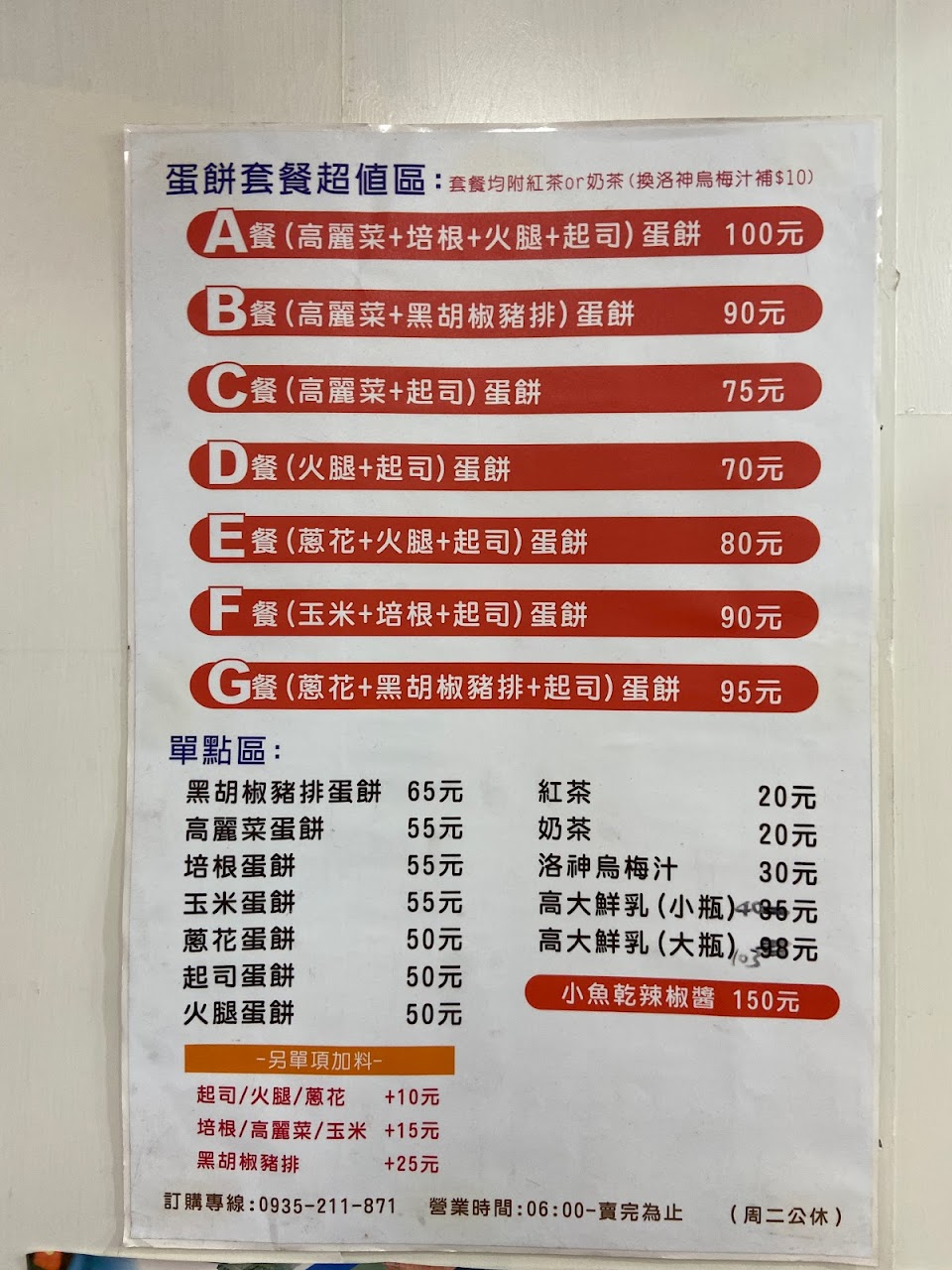 推薦A餐,料實在餅皮也跟一般不一樣,如果能吃辣的人,一定要加上小魚乾辣椒?️,奶茶也很推薦,可以電話預訂,詢問店家能夠何時過去拿,如果遇上人多,時間無法前往拿,可以衡量是否要改日前往,唯獨不好的就是漲價了?? …