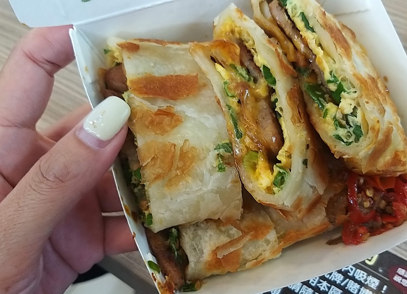 第一次是公司同事一起點外送吃到的 好吃到我念念不忘 之後又騎車去買 雖然價位不便宜 等待的時間也有點久(沒有打電話預約的話) 但就是很讓人滿足 尤其是他的辣椒醬 很辣很香 建議點蛋餅都可以加一點