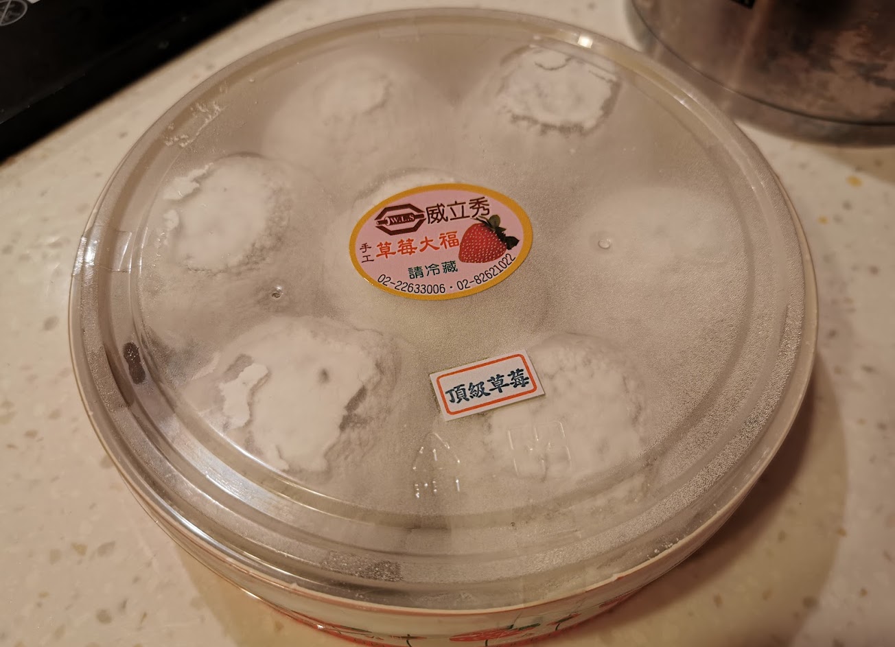 草莓大福好吃,只是吃的時候千萬不要嘴巴吸氣,不然會被粉嗆到