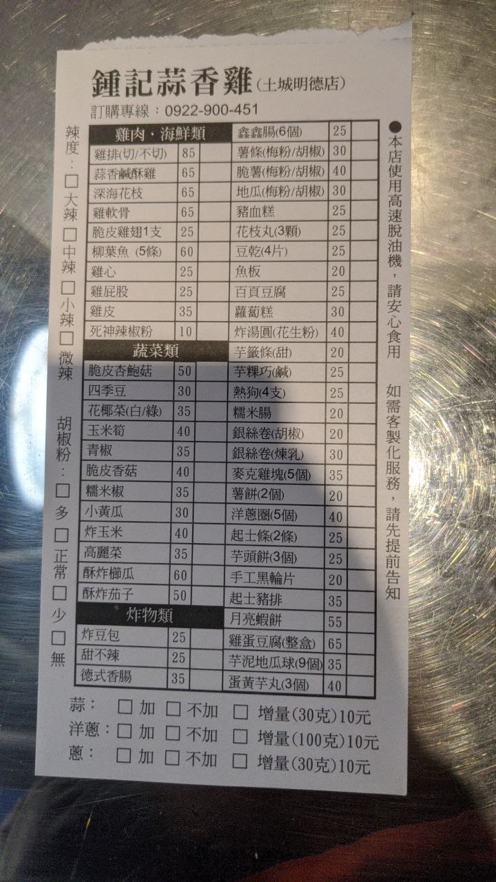 2024最新在地推薦餐廳的菜單_鐘記蒜香鹹酥雞 (土城明德店)的菜單、圖片