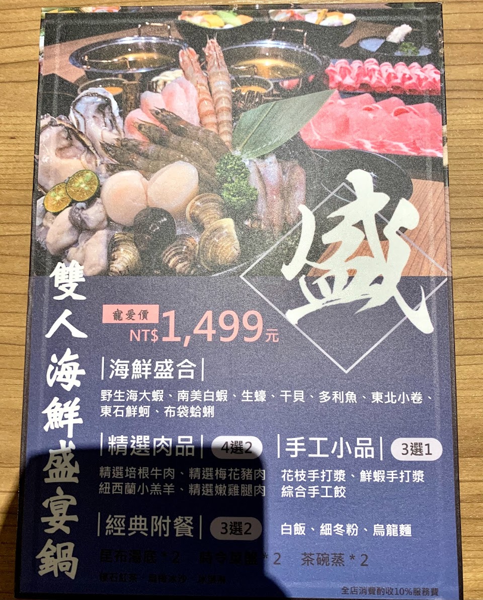 雙人火鍋套餐$1499+10%