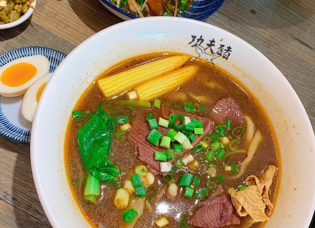 點了兩碗牛肉麵,一碗功夫一碗老饕,不知道是不是店家送錯肉了,老饕價位比較高但是肉反而很柴,也很不入味⋯份量也偏少,價位偏高,整體來說並不推薦。