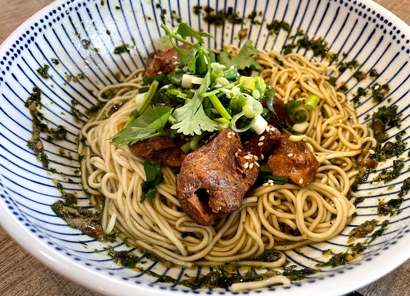 料理很特別,調味和一般麵店不一樣,價位也偏高一點,剛吃覺得很香,但因為較油所以吃到後面會有點膩,但整體而言,是一間很特別的麵店!裝潢也很好!