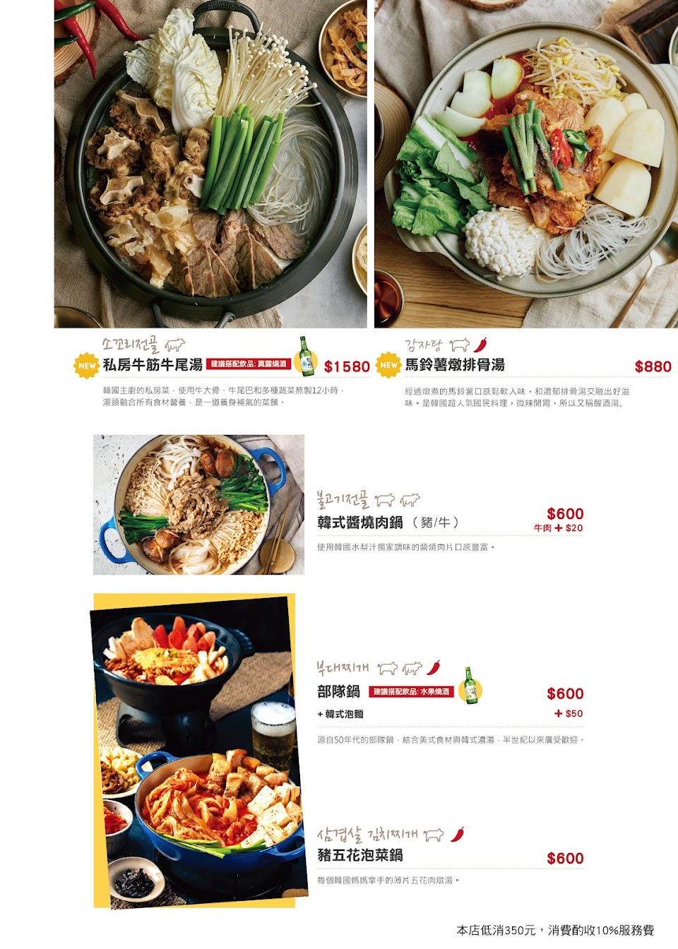 店家提供的菜單照片看起來很有吸引力,種類也豐富,但實際吃起來非常普通,照片賣相遠遠勝過滋味,也不覺得比現在林立的韓式餐廳道地。居然還是韓國開來的連鎖店?!有閒錢找youtuber推薦前是否該先確保自己提供的水準?我都快退訂訂閱多年的在韓台灣人妻了(懷疑其味覺參考價值)。