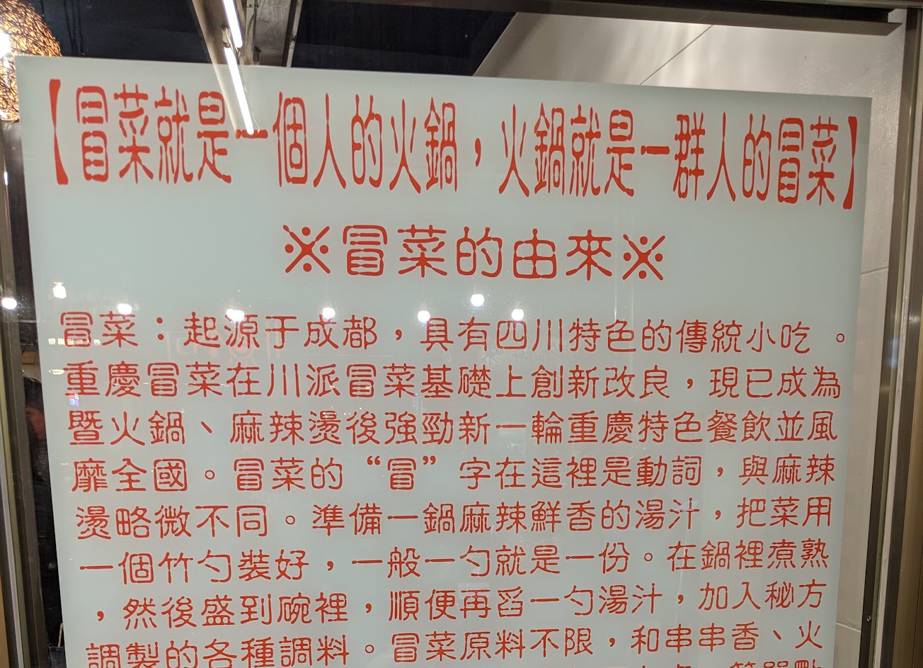 點了冒菜 用多種中藥熬煮湯頭相當順口 點了排骨酥給的很有誠意 最特別的是秘製麻辣醬寬粉 十分特別的香氣 從未吃過 香麻帶勁 寬粉Q彈好吃 會再光顧