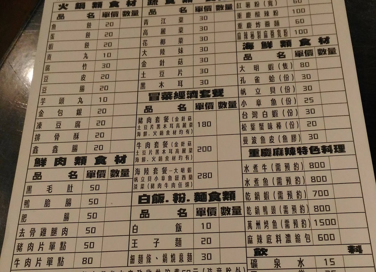 套餐份量很多 料就裝滿一個泡麵鍋 包含肉片 兩隻蝦 淡菜 各式火鍋料 花椰菜 高麗菜 馬鈴薯片等等 老闆對湯頭很有自信 口味上也可以請老闆調整 不似一般麻辣鍋那般油膩 辣味不會停留在口中過久 加點的料份量也不少 相較於一般涮涮鍋 料多實在 湯頭不錯 願意回訪的小店