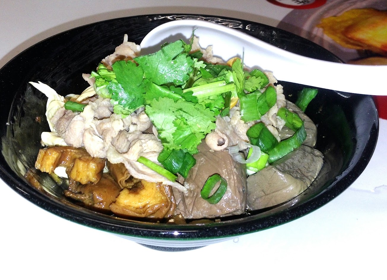 點了豬肉綜合加拉麵,湯頭選了小酸小辣。配料的鴨血跟大腸都有入味,豬肉片也軟嫩好吃。小酸小辣都在我接受範圍,下次想選中酸試試。拉麵也煮的Q彈好吃,cp值很高,推薦