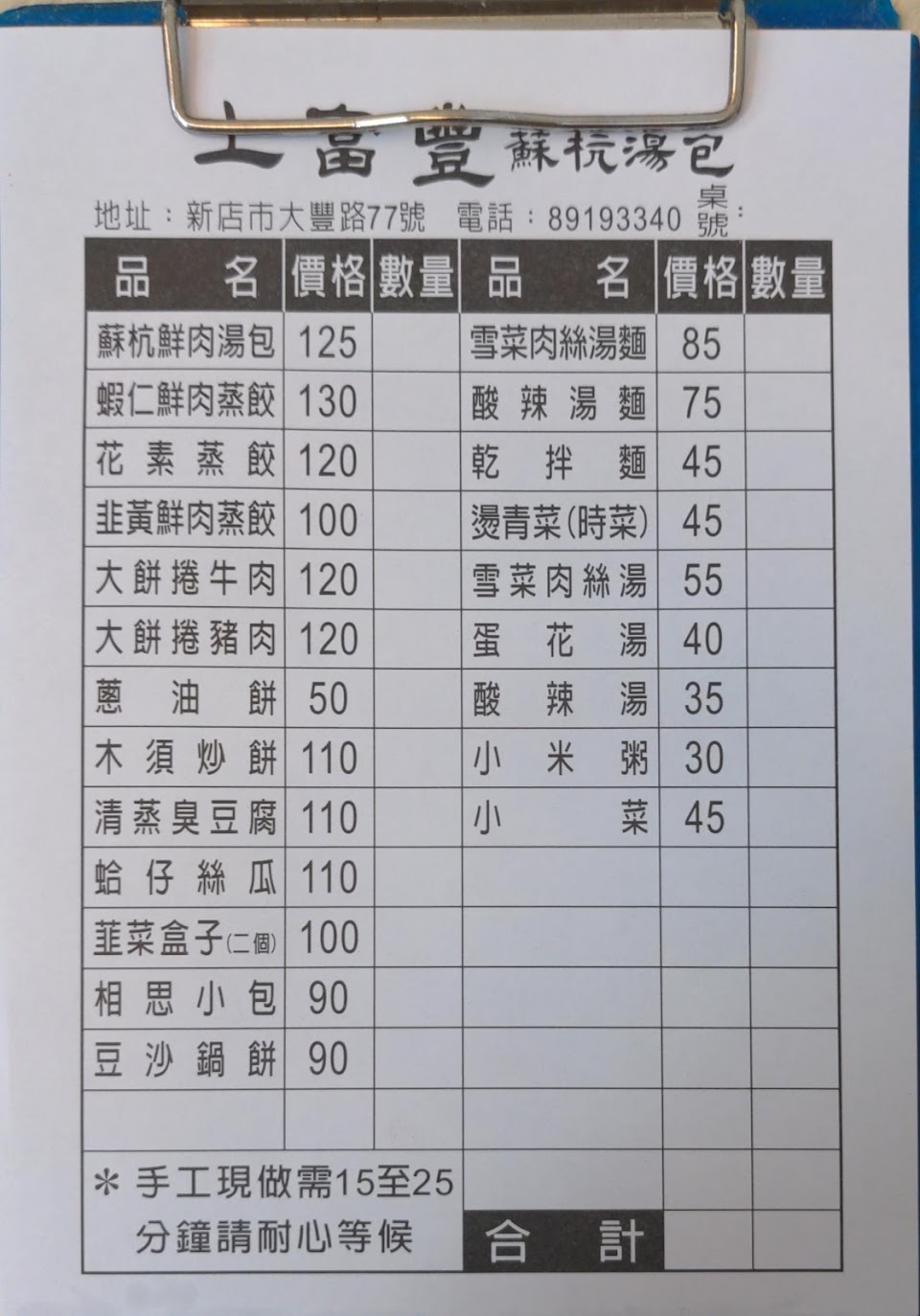 2024最新在地推薦餐廳的菜單_上富豐蘇杭湯包的菜單、圖片