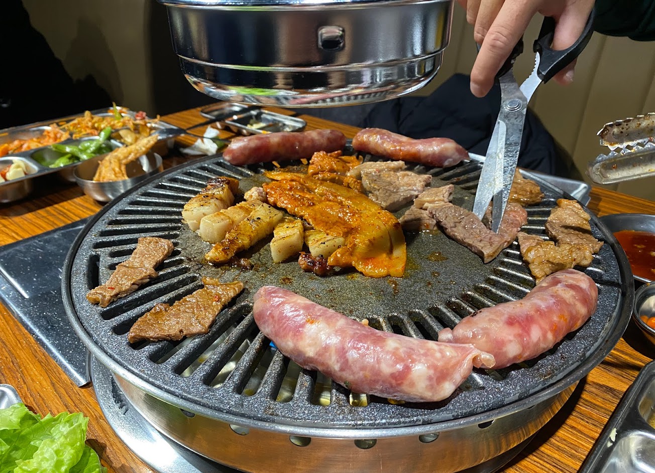 小山堆疊般的肉品,愛吃肉的人可以來試試看。生菜包肉的生菜就是一般生菜,甚至有的只是一小片,分不出來是要包肉用還是生菜沙拉用。加價點購的海鮮煎餅不推薦,煎餅加了蛋,很像烘蛋的口感,如果想吃酥脆煎餅的可能會失望。餐廳的地板很滑,一開始以為是鞋底,不過同行朋友也都差點滑倒,甚至女廁地板滑到會有摔倒風險,建議兒童或者長者要小心。