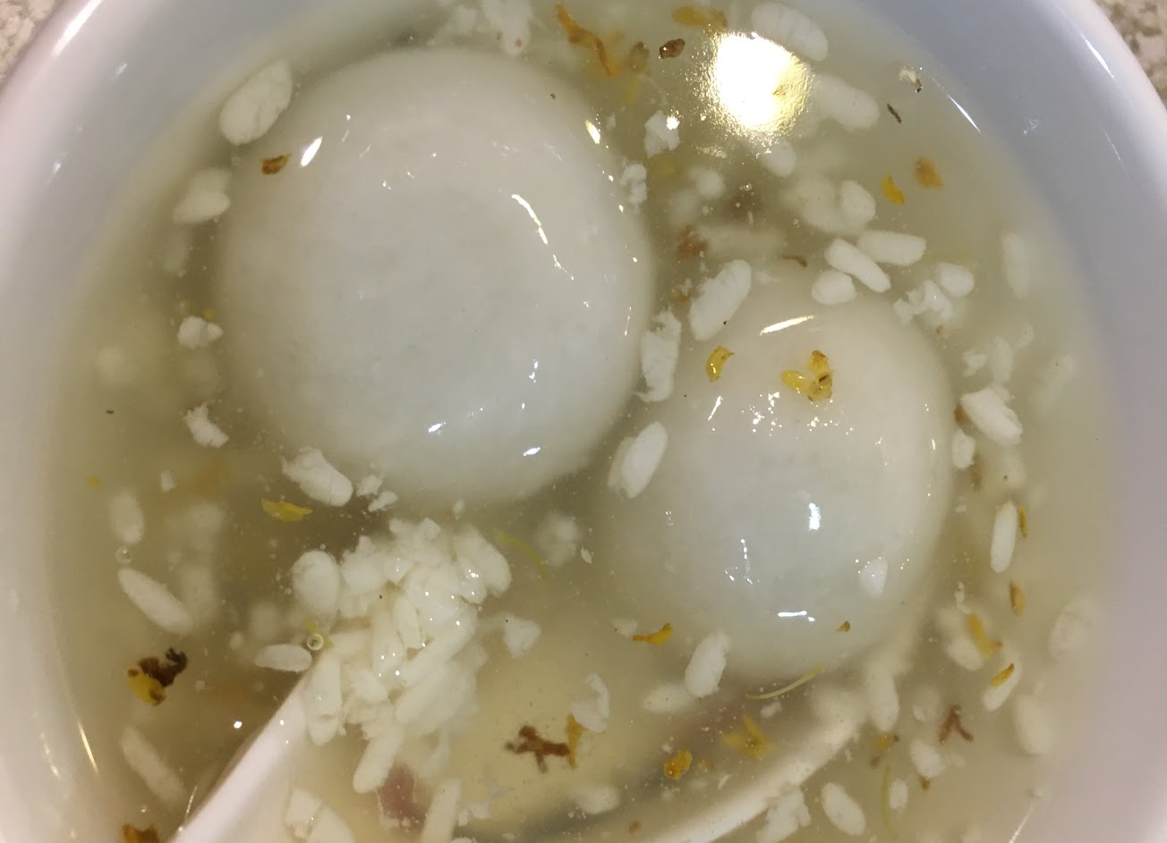 最終,甜點上桌:桂花釀芝麻湯圓,也依舊讓人滿意的一道點心,好吃!