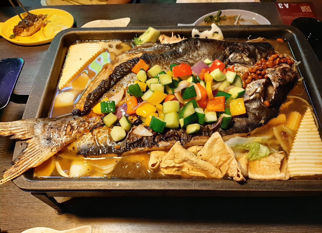 超推酸辣烤魚,服務人員也超貼心的慢慢介紹店內的食材。這魚?分量大,記得多叫幾位親朋好友一起品嚐。不然的話,一兩個人肯定吃不完? …