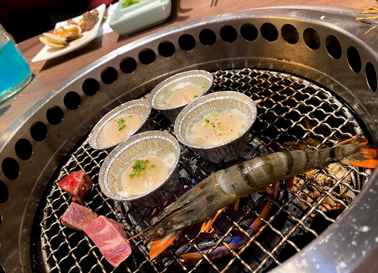 她在上肉的時候並沒有每一項肉品都告知我們這個肉怎麼烤、蝦子怎麼烤,於是我們用過去的經驗烤,她卻不停來糾正烤的角度、烤的量、烤的時間、有沒有翻動等等